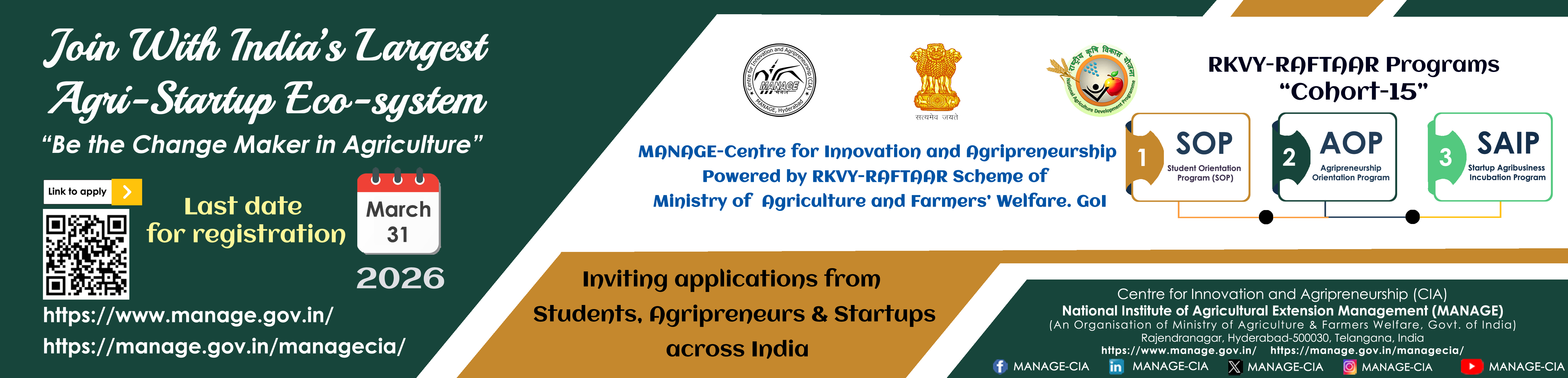 MANAGE-CIA Cohort 15 Application Form under RKVY-RAFTAAR Program(Last date 31 March, 2026) Brochure | Poster | Register | PPT Template |