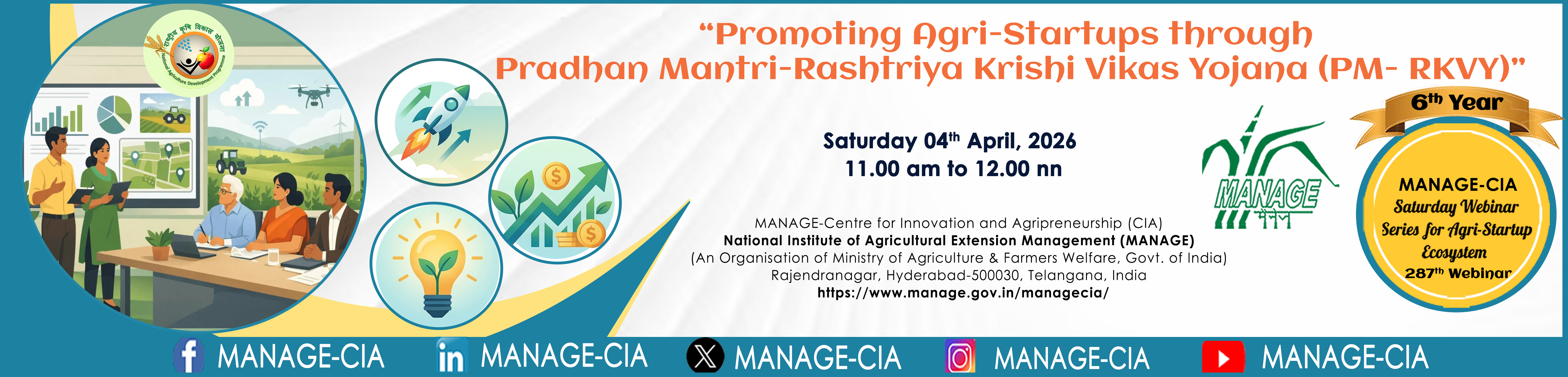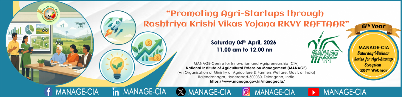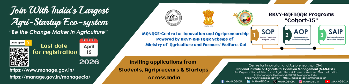MANAGE-CIA Cohort 15 Application Form under RKVY-RAFTAAR Program(Last date 15th April, 2026) Brochure | Poster | Register | PPT Template |
