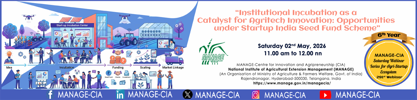 3 | Institutional Incubation as a Catalyst for Agritech Innovation: Opportunities under Startup India Seed Fund Scheme...Register Now | 02/05/2026-02/05/2026 | Dr. Saravanan Raj | Webinar |