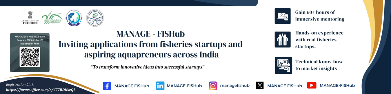 14 | MANAGE-FISHub Fortnightly Webinar on “Startups in Fisheries†...Register Now | 24/10/2025-24/10/2025 | Dr. Saravanan Raj | Online, MANAGE |