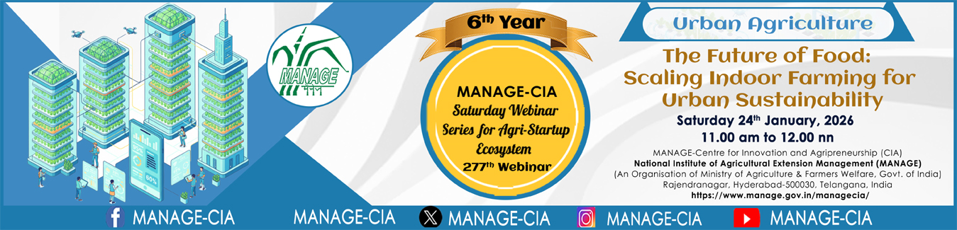 24 | Innovating Urban Agriculture: Building Smarter, Greener Cities with Vertical Farming...Register Now | 31/01/2026-31/01/2026 | Dr. Saravanan Raj | Webinar - MANAGE Online |
