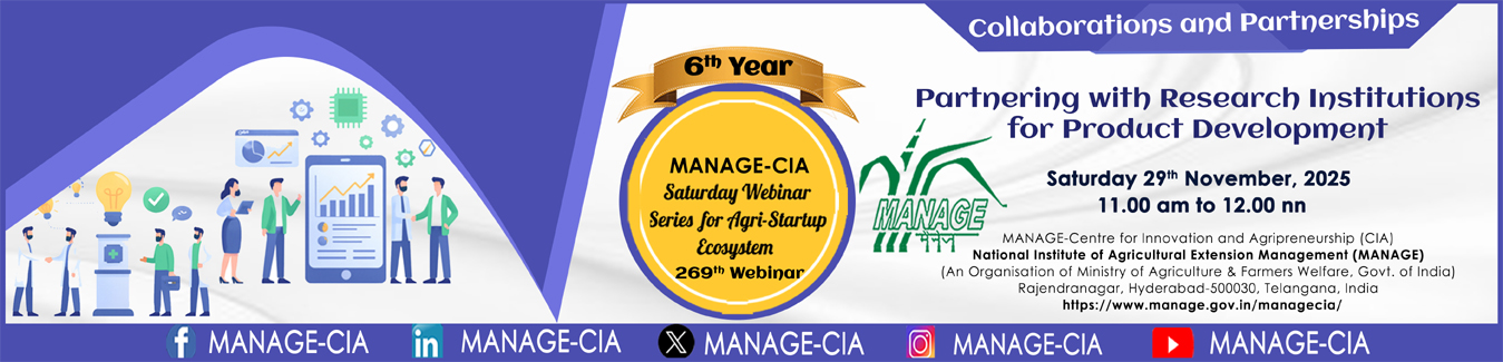 73 | Webinar on Innovations in Extension with Entrepreneurship ...Register Now | 23/01/2026-23/01/2026 | Dr. Saravanan Raj | Webinar - MANAGE Online |