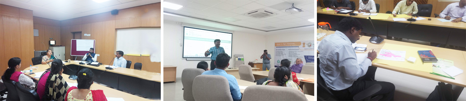 Activities related to Startup Agri-Business Incubation Program - I, where participants are exchanging ideas with mentors and participants.
