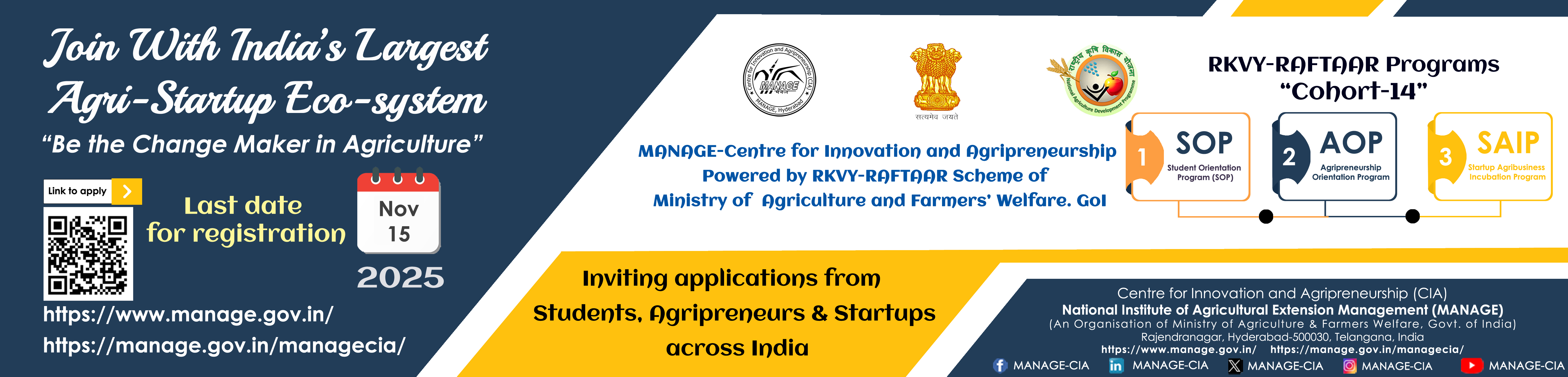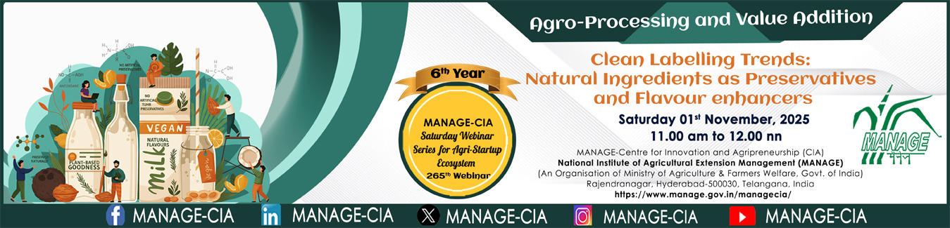 21 | Sustainable Packaging Solutions Agri-startups developing edible, biodegradable, or reusable packaging...Register Now | 15/11/2025-15/11/2025 | Dr. Saravanan Raj | Webinar - MANAGE Online |