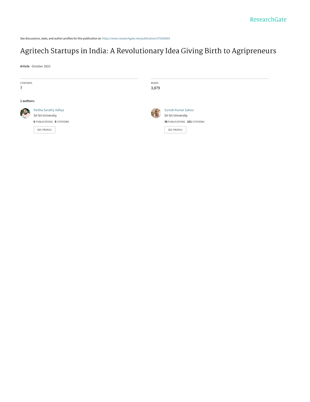 Research Article - 1 : Agritech Startups in India: A Revolutionary Idea Giving Birth to Agripreneurs