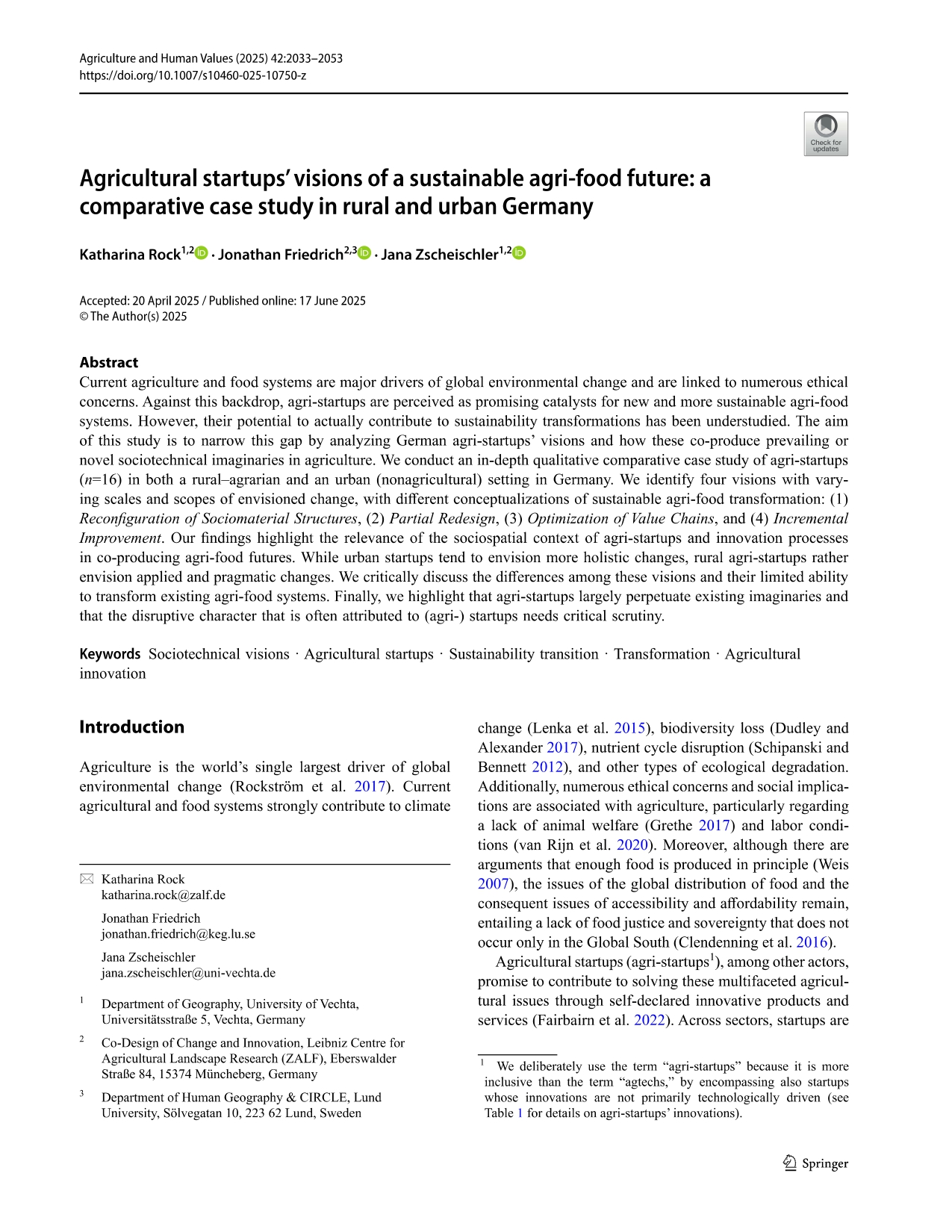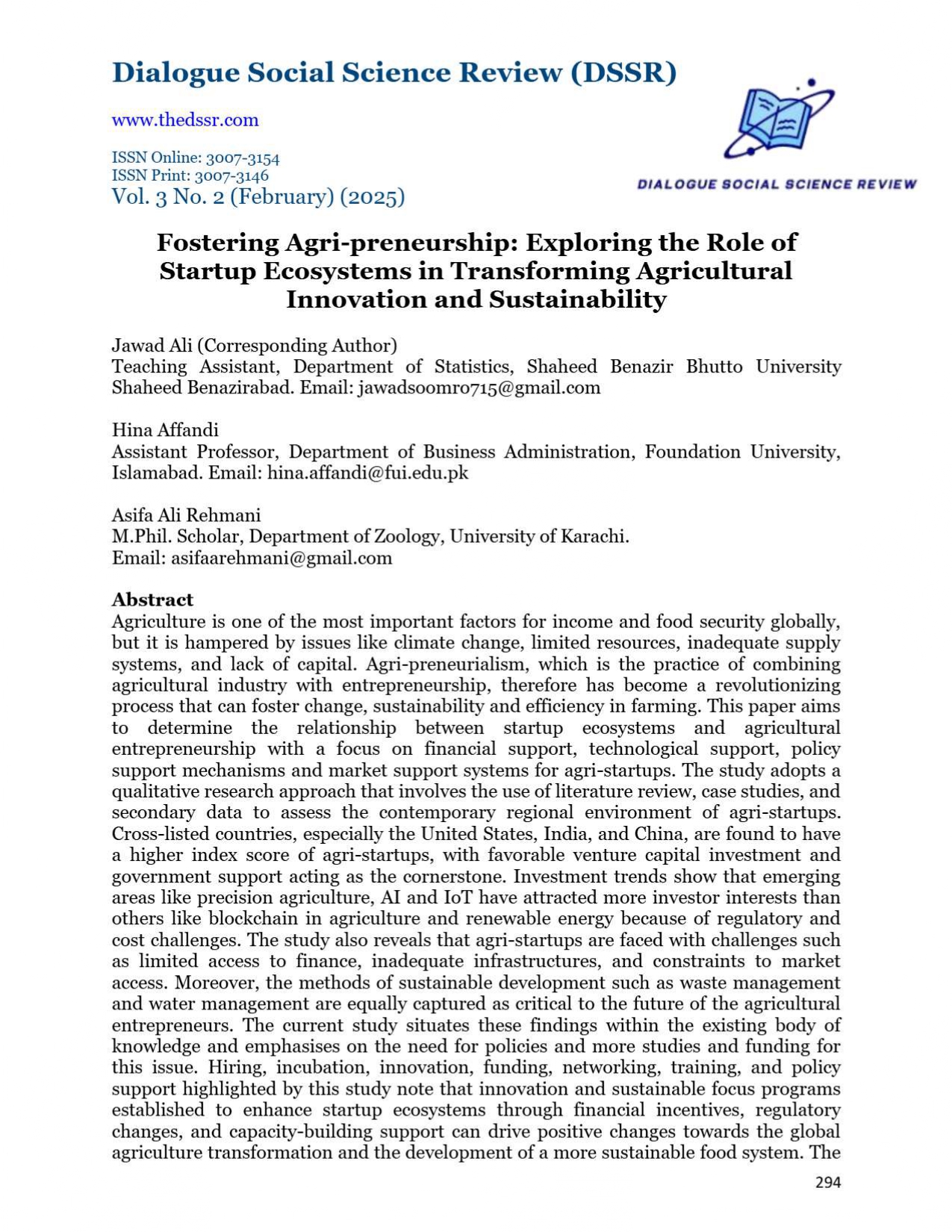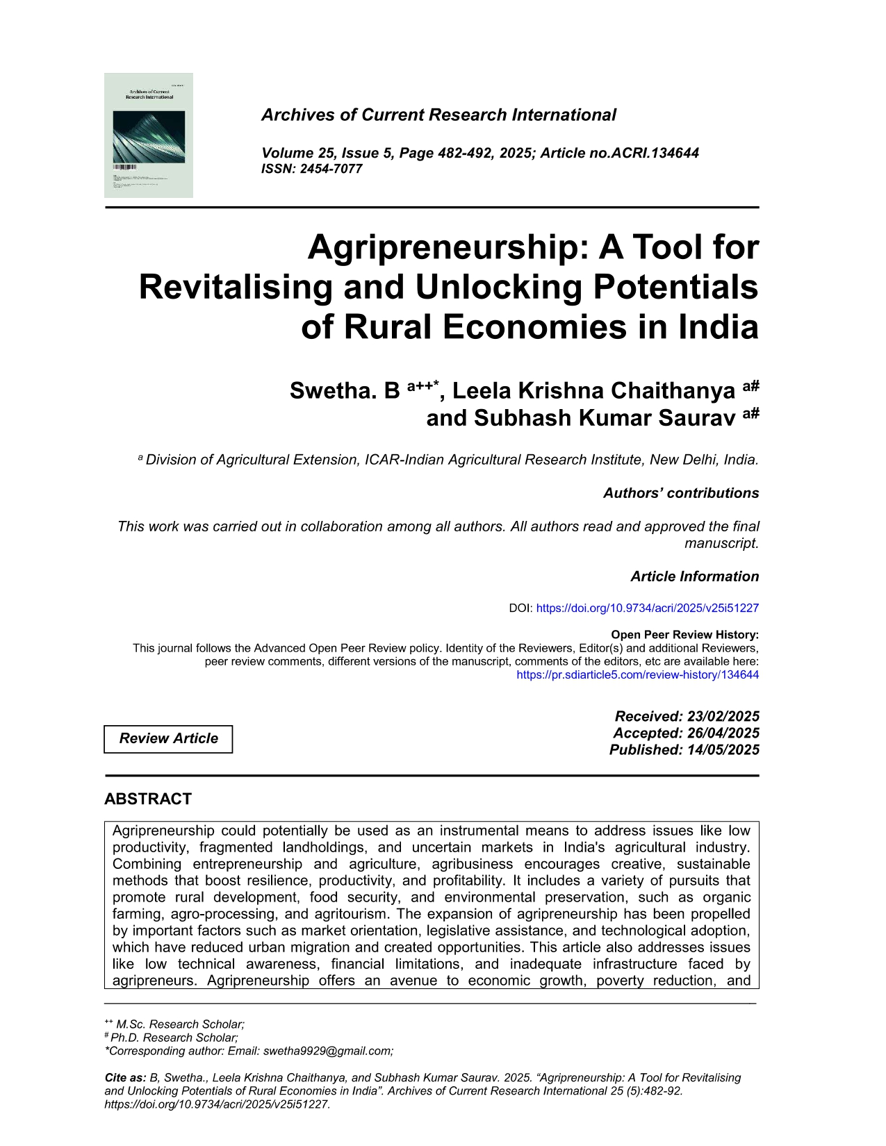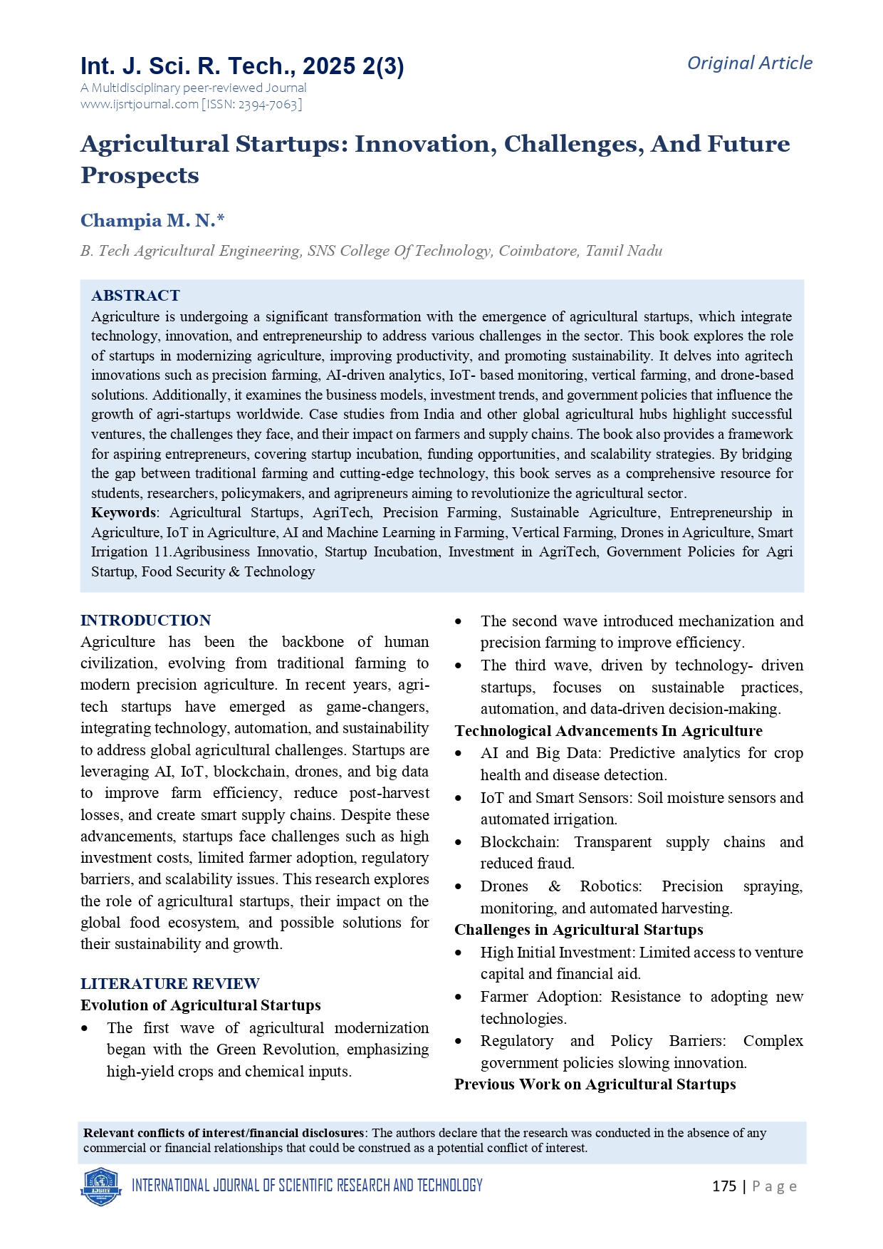 Research Article - 2 : Agricultural Startups: Innovation, Challenges, and Future Prospects