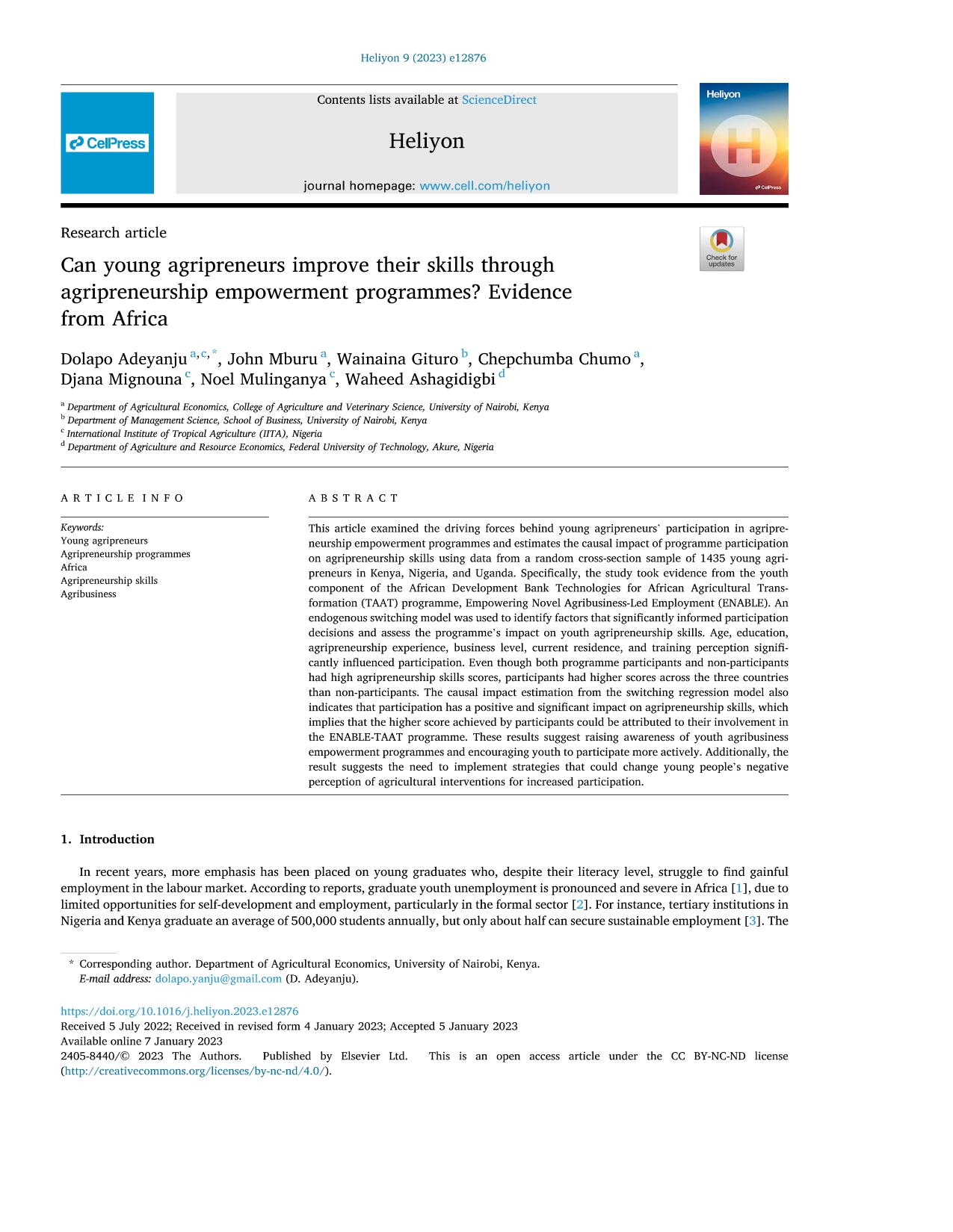 Research Article - 12 : Can young agripreneurs improve their skills through agripreneurship empowerment programmes? Evidence from Africa