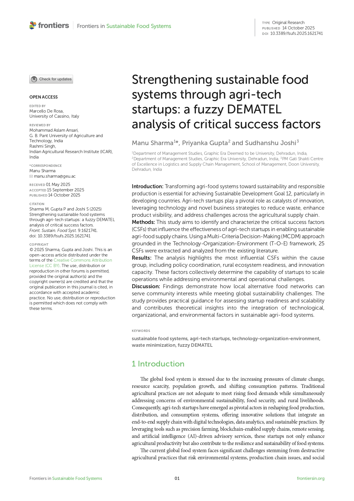 Research Article - 21 : Strengthening sustainable food systems through agri-tech startups: a fuzzy DEMATEL analysis of critical success factors