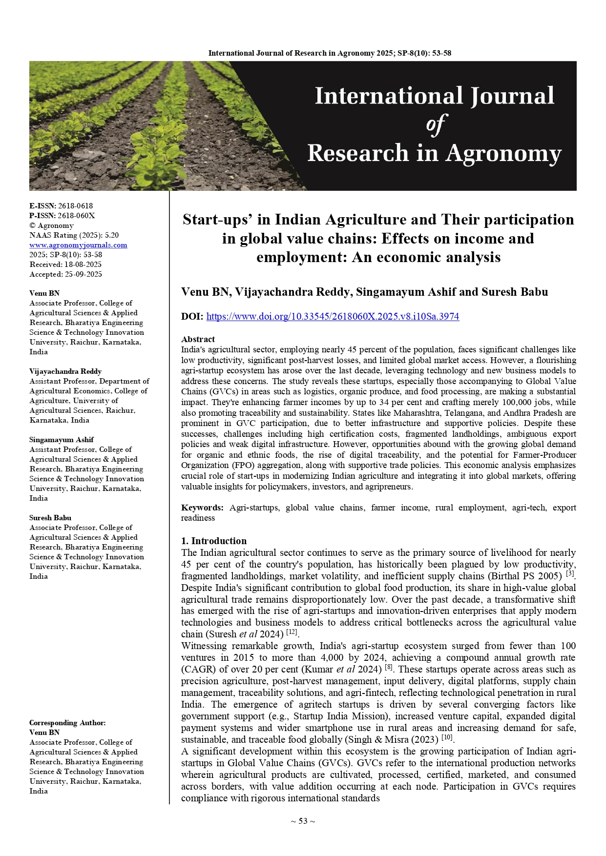 Research Article - 22 : Start-ups’ in Indian Agriculture and Their participation in global value chains: Effects on income and employment