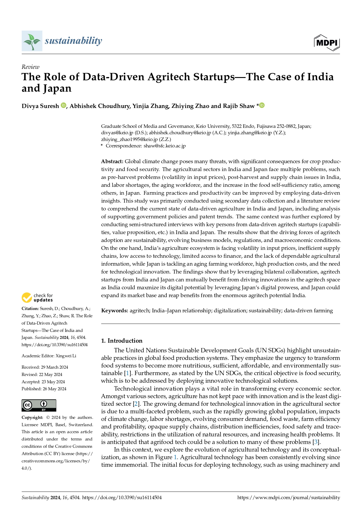 Research Article - 23 : The Role of Data-Driven Agritech Startups—The Case of India and Japan