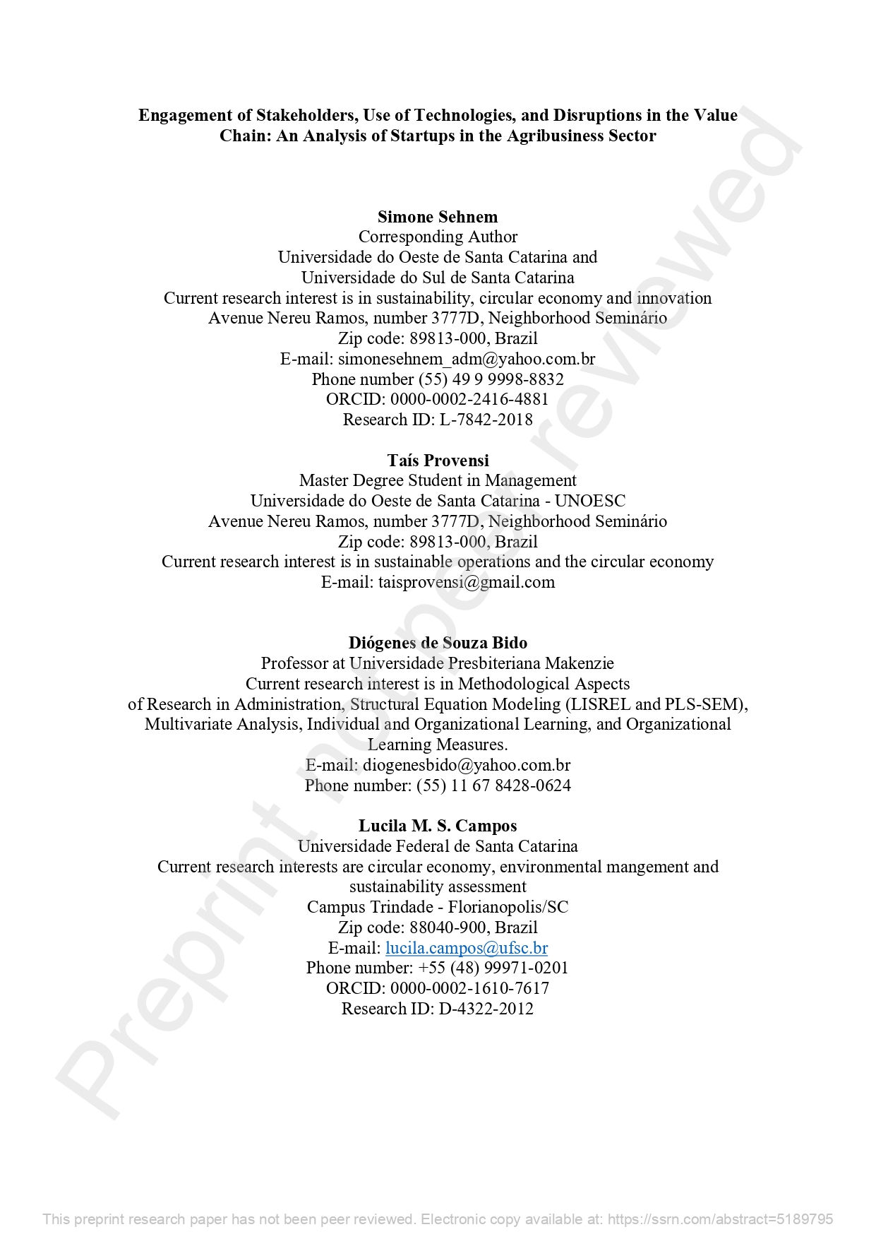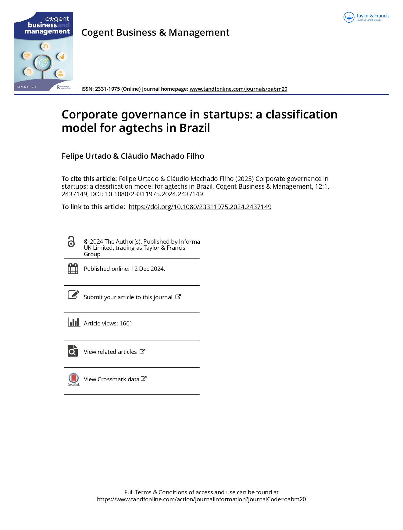 Research Article - 30 : Corporate governance in startups: a classification model for agtechs in Brazil