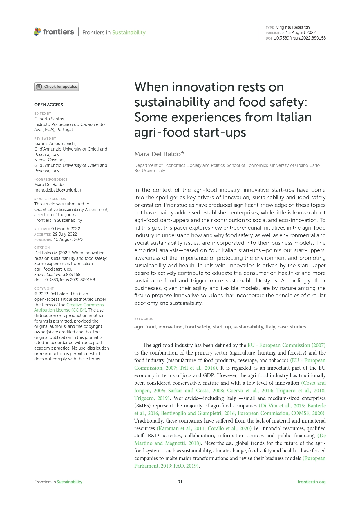 Research Article - 26 : When innovation rests on sustainability and food safety: Some experiences from Italian agri-food start-ups