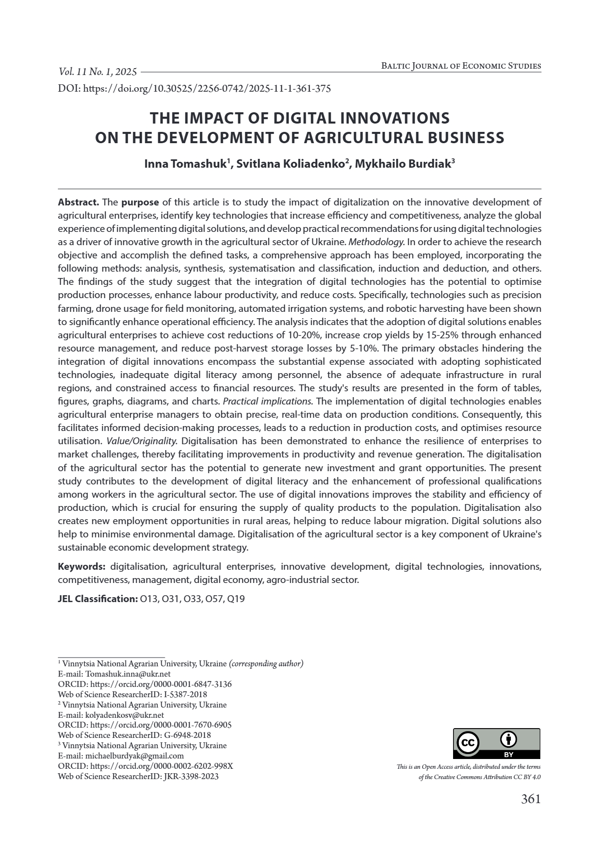 Research Article - 27 : The impact of digital Innovations on the Development of Agriculural Business