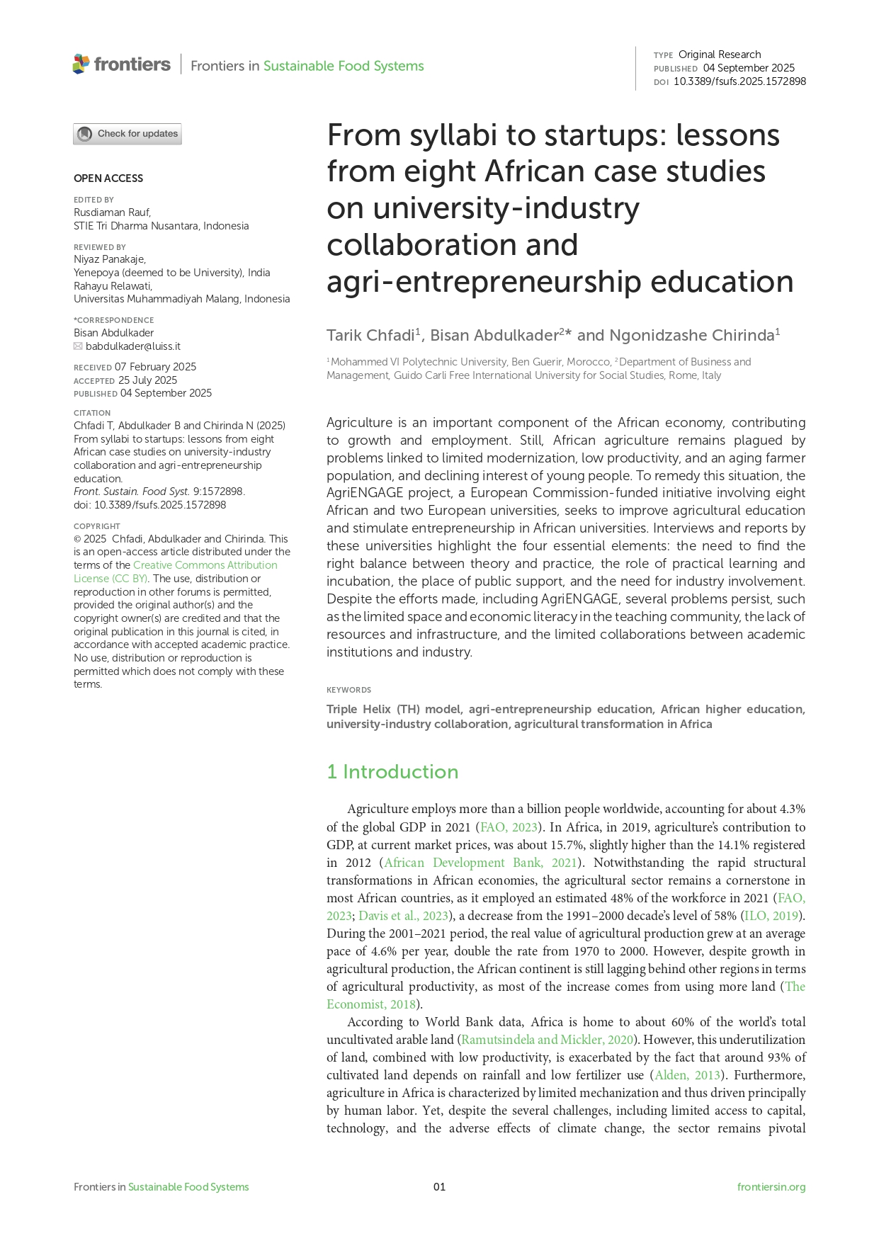 Research Article - 28 : From syllabi to startups: lessons from eight African case studies on university-industry collaboration and agri education