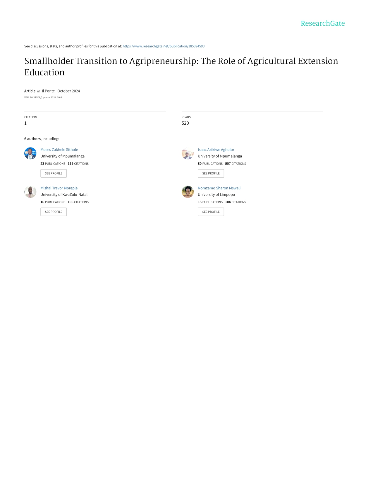 Research Article - 3 : Smallholder Transition to Agripreneurship: The Role of Agricultural Extension Education
