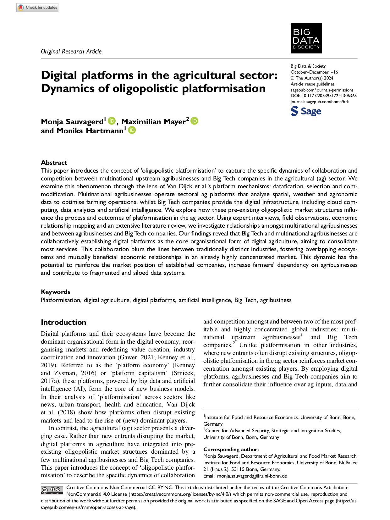 Research Article - 31 : Digital platforms in the agricultural sector: Dynamics of oligopolistic platformisation