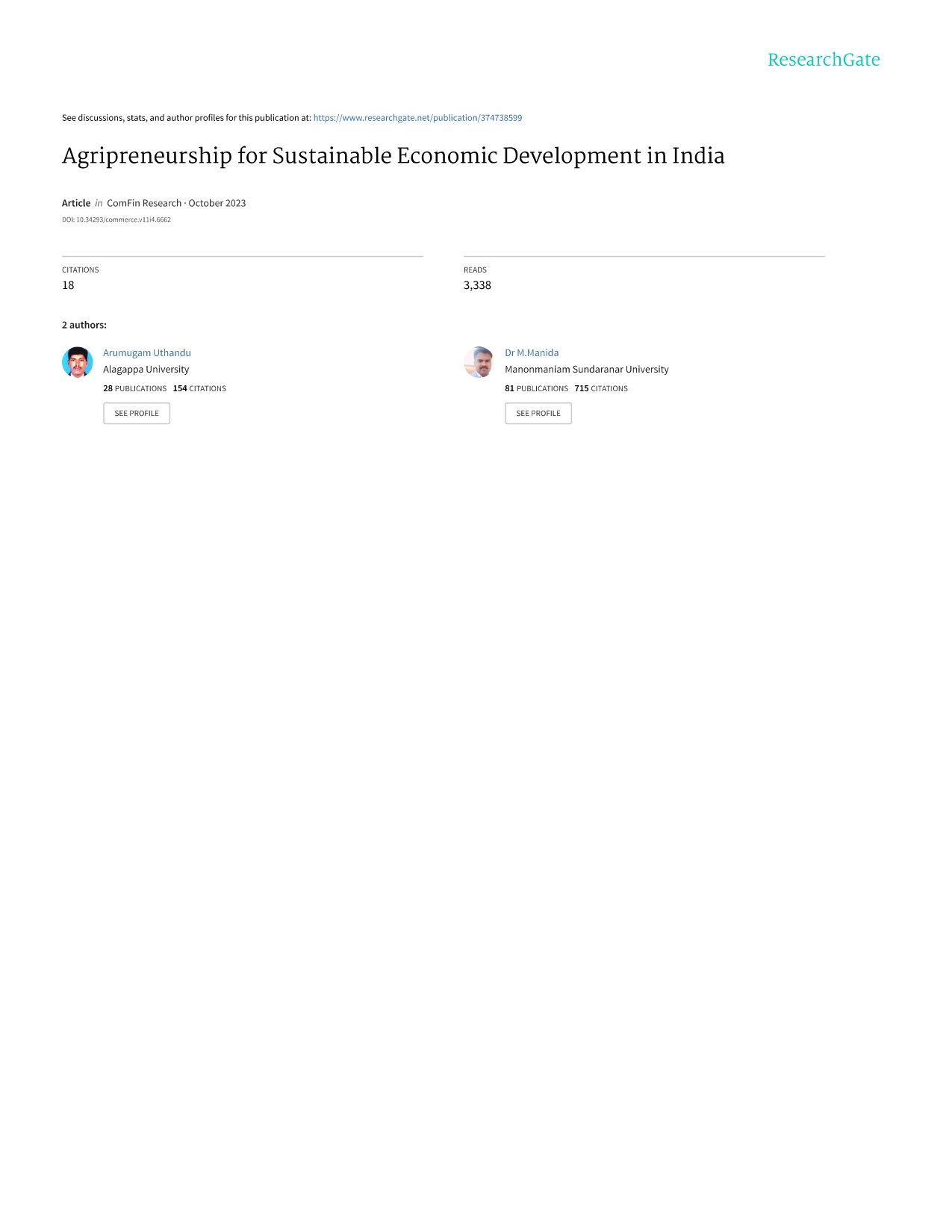 Research Article - 5 : Agripreneurship for Sustainable Economic Development in India