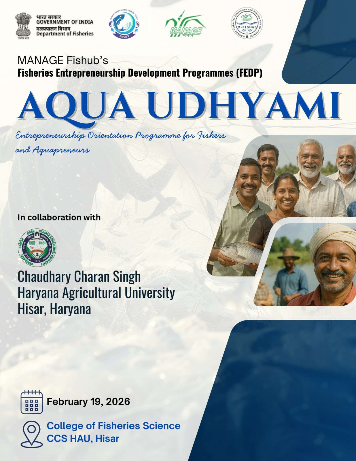 Participants will gain exposure to entrepreneurship concepts, business planning tools, value addition strategies, digital marketing approaches, and institutional support mechanisms. The programme provides a structured platform where participants can interact with experts, learn from successful entrepreneurs, and develop confidence to initiate their own fisheries enterprises.