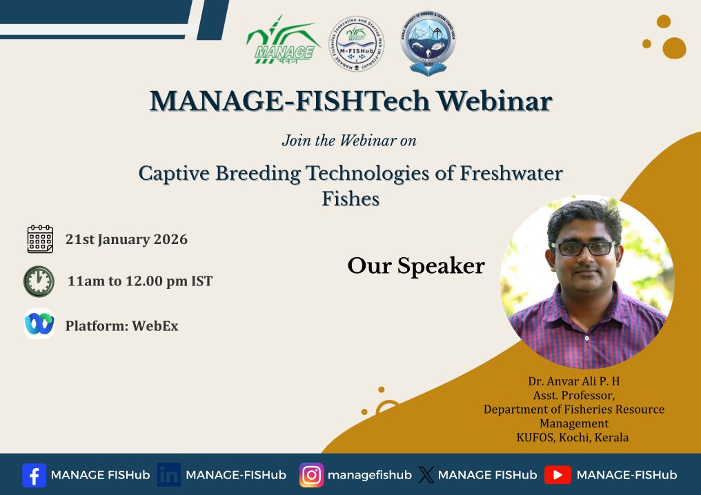 Webinar 1: MANAGE-FISHTech Webinar on “ Capitative Breeding Technologies of Freshwater Fishes"- January 21, 2026”
