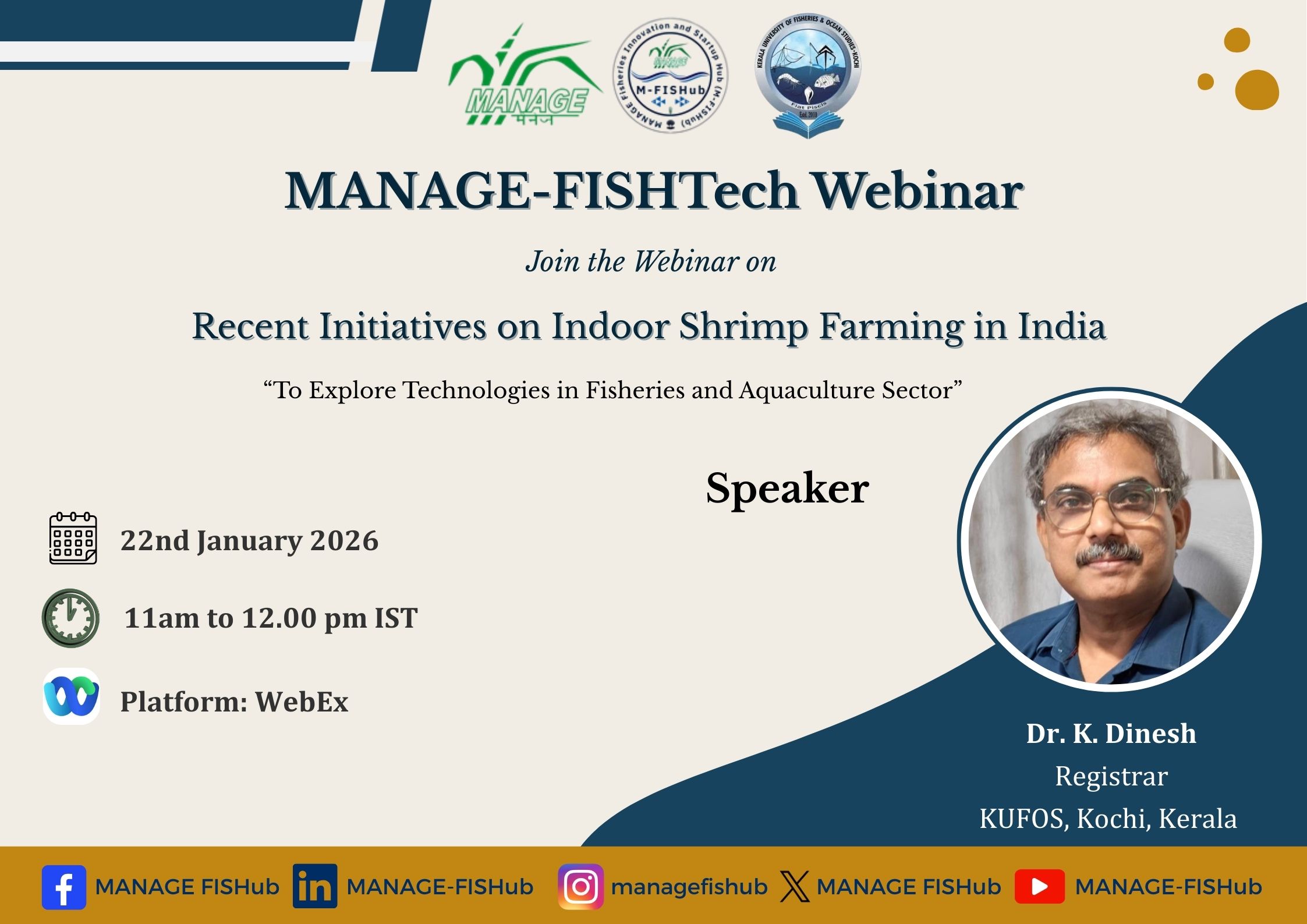 Webinar 2: MANAGE-FISHTech Webinar on "Recent Initiatives on Indoor Shrimp Farming in India" – January 22, 2026