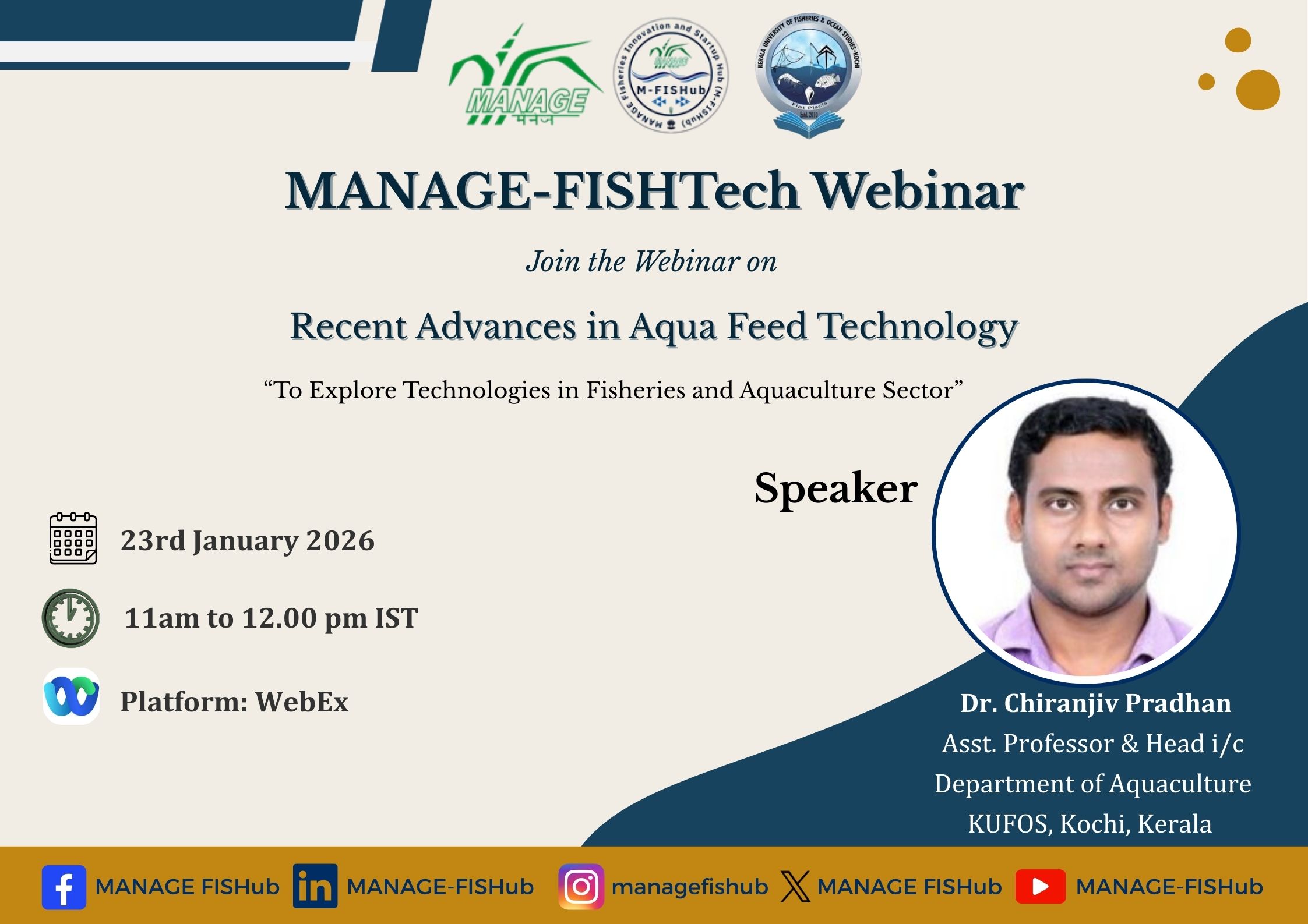Webinar 3: MANAGE-FISHTech Webinar on "Recent Advances in Aqua Feed Technology" - January 23, 2026