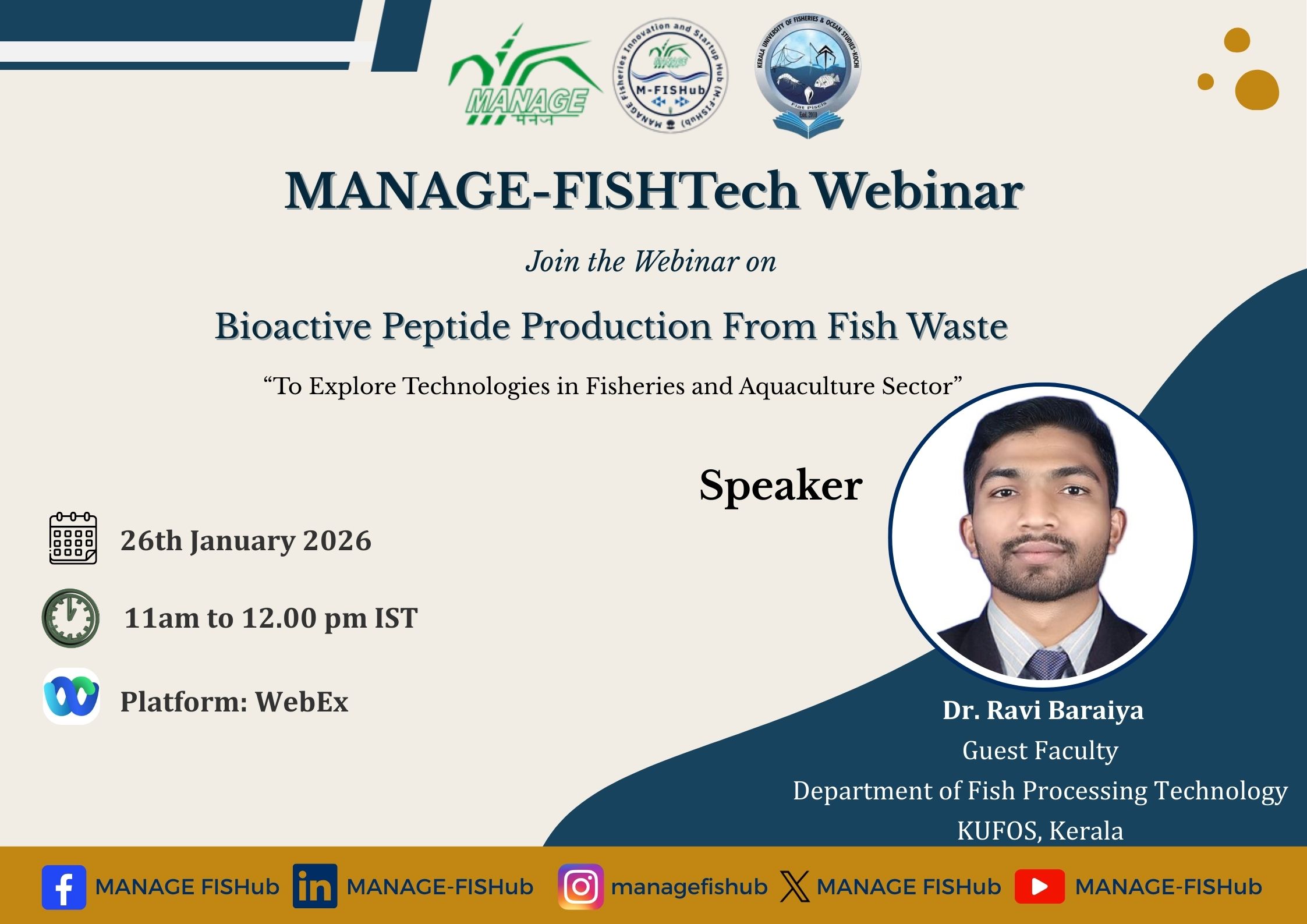 Webinar 4: MANAGE-FISHTech Webinar on "Bioactive Peptide Production from Fish Waste" - January 26, 2026