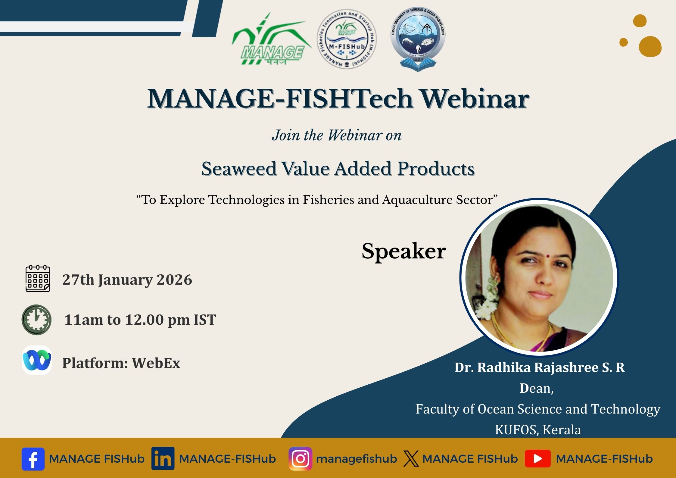 Webinar 5: MANAGE-FISHTech Webinar on "Seaweed Value Added Products" - January 27, 2026