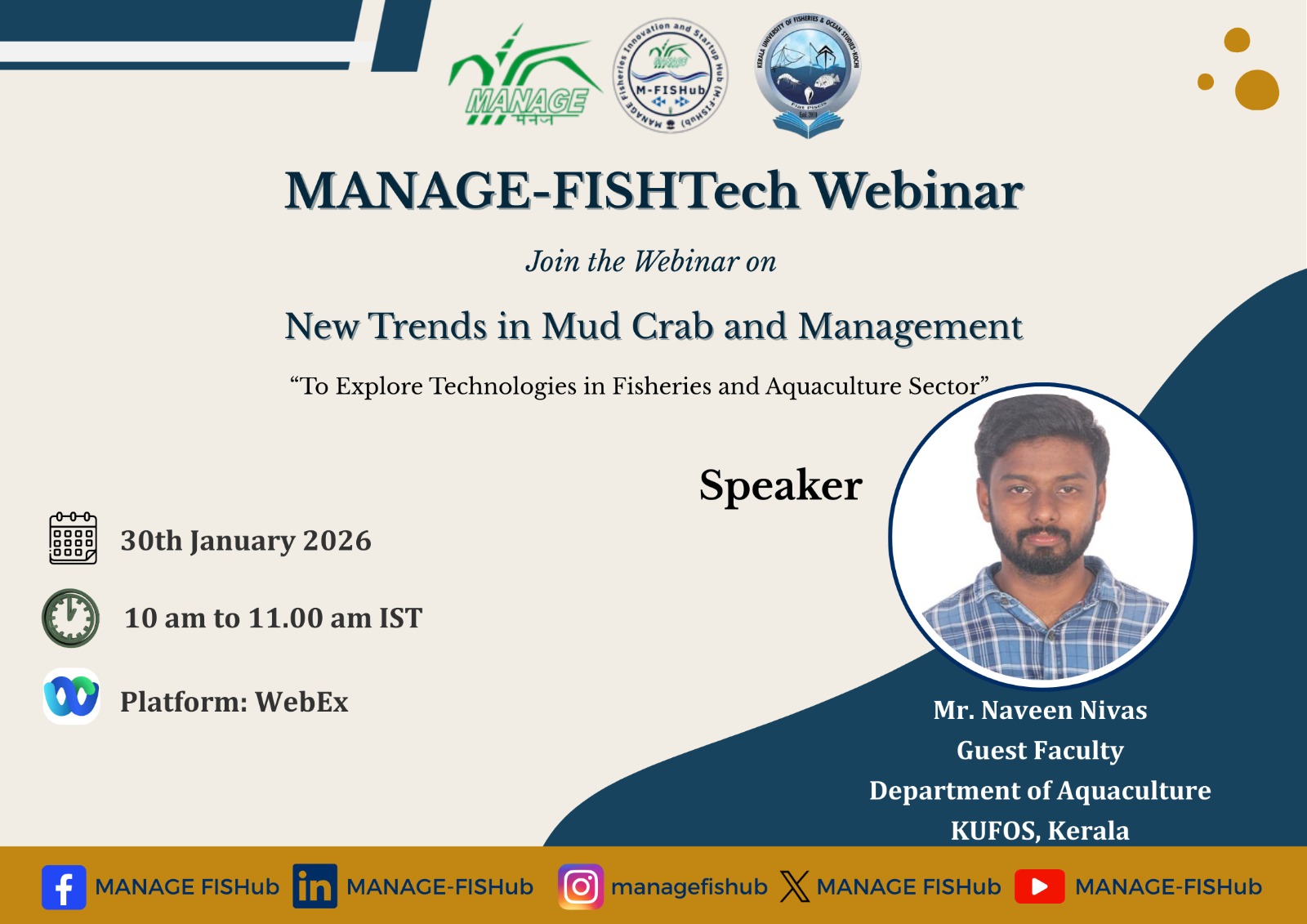 Webinar 8: MANAGE-FISHTech Webinar on "New Trends in Mud Crab and Management" - January 30, 2026