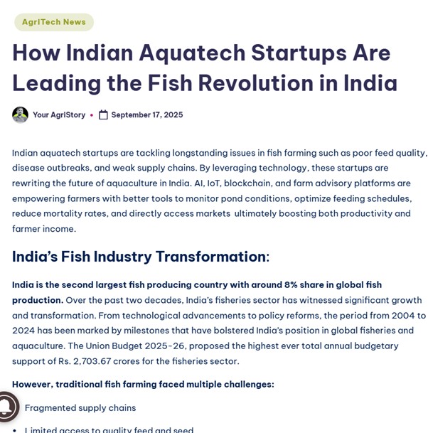 Blogs Related to Fisheries-startup, Fishpreneurship and Fisheries technology