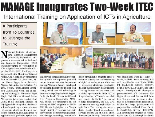 ![]() MANAGE Commences the third batch of the Jai Jawan Kisan program Date: 27 April, 2024 |